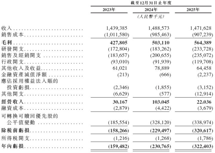 招股书显现,在畴前的2023年、2024年和2025年,绿米联创的营业收入鉴识为东谈主民币14.39亿、14.89亿和14.72亿元,相应的净损失鉴识为东谈主民币1.59亿、2.30亿和3.22亿元,相应的经窜改净利润鉴识为东谈主民币0.45亿、1.13亿和0.57亿元。