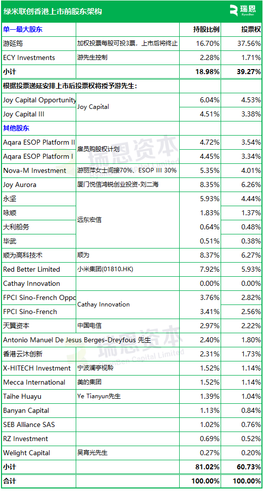 招股书显现,绿米联创遴荐加权投票权架构,游延筠每股可投3票,加权投票权架构将在上市后阻隔。公司在香港上市前的推动架构中,