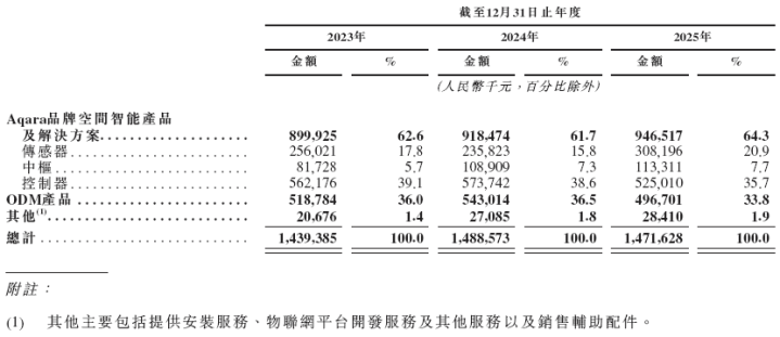 绿米联创的收入主要来自销售空间智能家具及处理决策,尤其是旗下「Aqara」品牌家具和处理决策。公司提供三大类别的Aqara品牌空间智能家具及处理决策,包括: