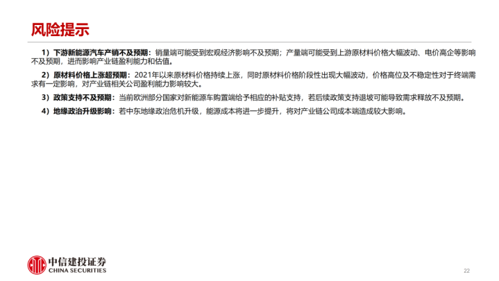 1)卑劣新动力汽车产销不足预期:销量端可能受到宏不雅经济影响不足预期;产量端可能受到上游原材料价钱大幅波动、电价高企等影响不足预期,进而影响产业链盈利才和洽估值。
