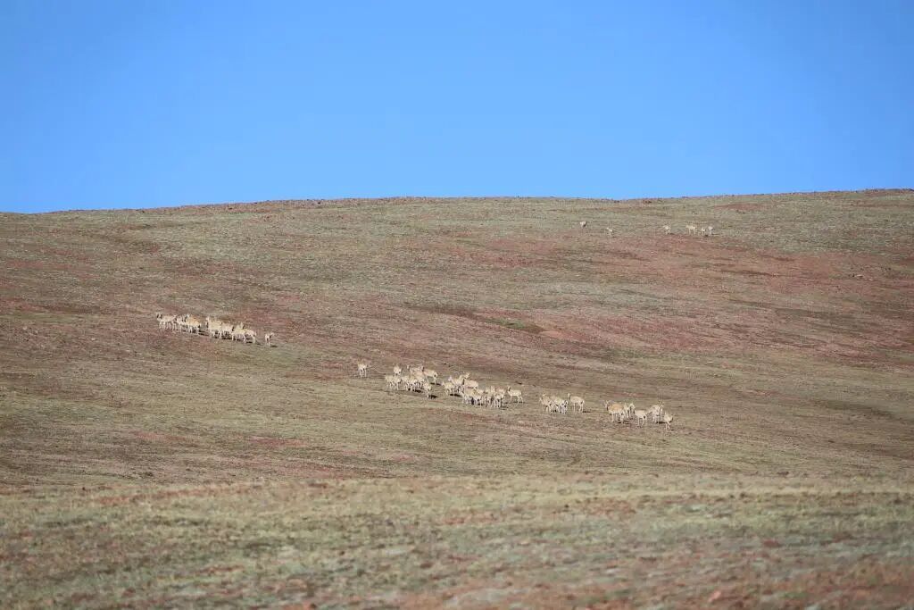 可可西里本地卓乃湖隔邻的藏羚羊群。