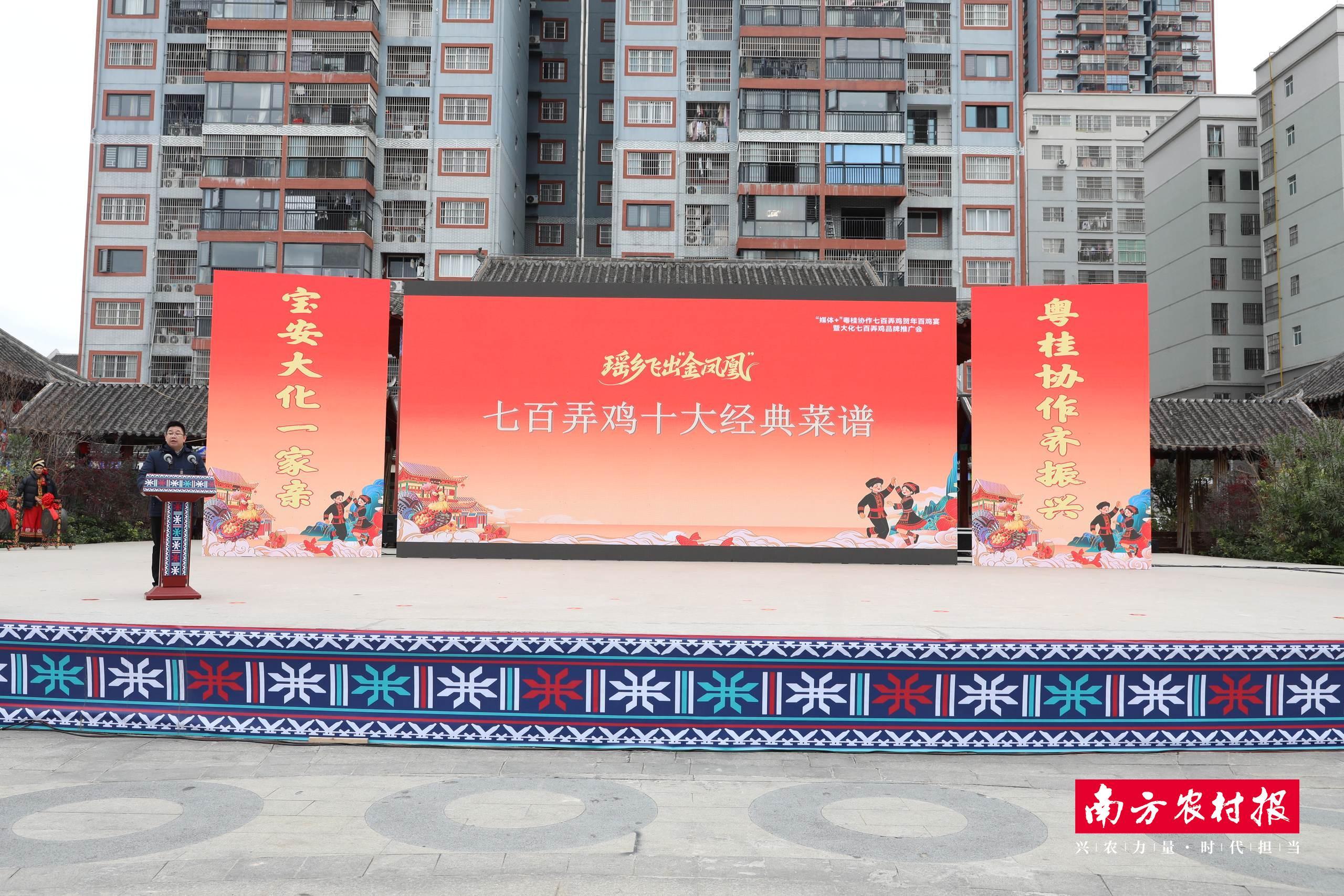 当日,在“媒体+”粤桂和谐“七百弄鸡”拜年百鸡宴暨大化七百弄鸡品牌现实会上,广西烹协大假名厨专科委员会主席、大化古江大旅社总司理郑秋锋现场发布“和谐佳宴・七百弄鸡十大经典菜谱”,这一风光看成本次品牌现实会的中枢议程之一,解锁了七百弄鸡的多元烹调神色,让瑶乡地标好意思味的舌尖魔力惊艳四方。